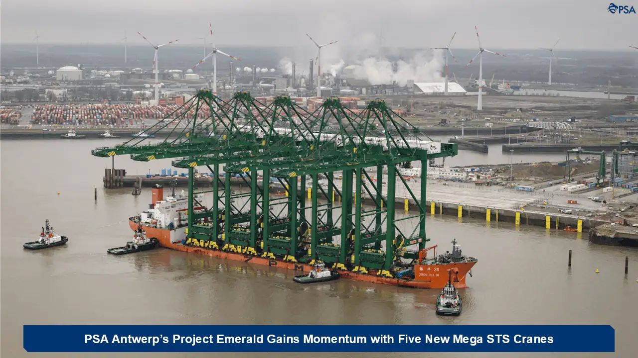 PSA Antwerp Welcomes Five New Mega Ship-To-Shore Cranes as Project Emerald Reaches Major Milestone